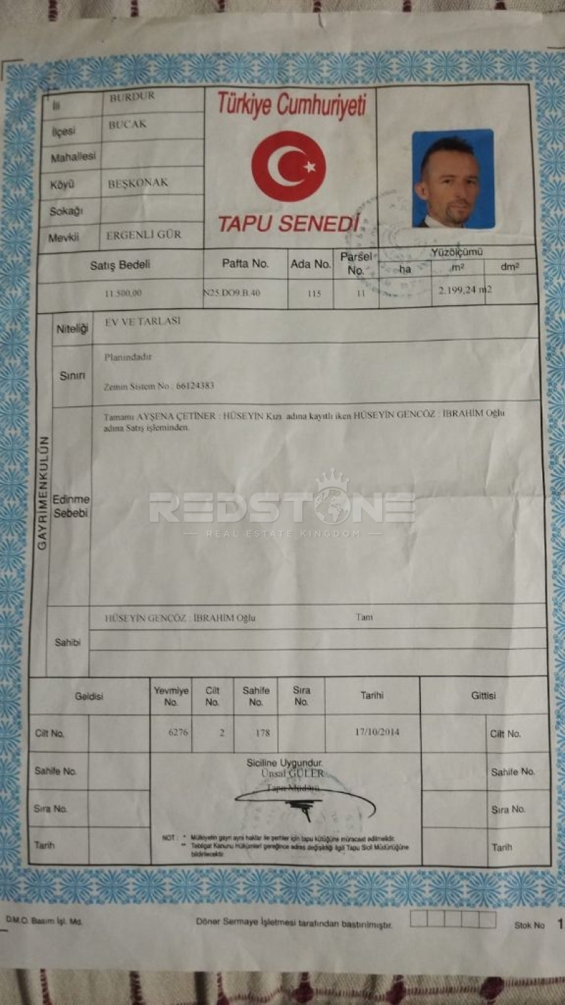 Burdur Bucak Beşkonakta 2 Dönüm Tarla İçinde Dubleks Ev