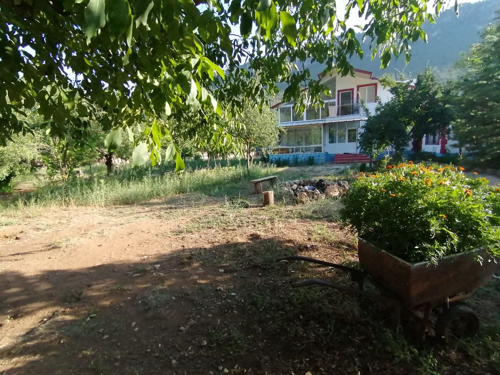 Bahçede çok sayıda yetişkin meyve ağacı