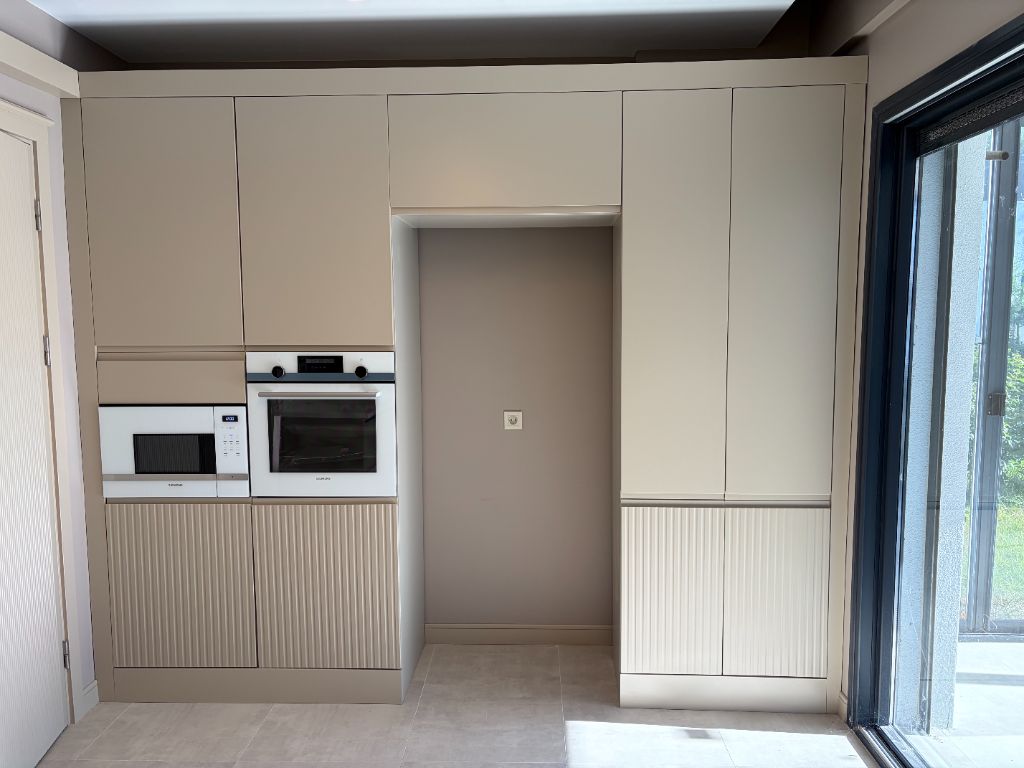 *Mat lake boyalı ahşap kaplama MDF mutfak dolapları,